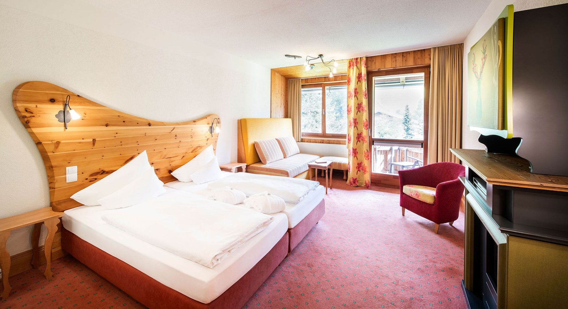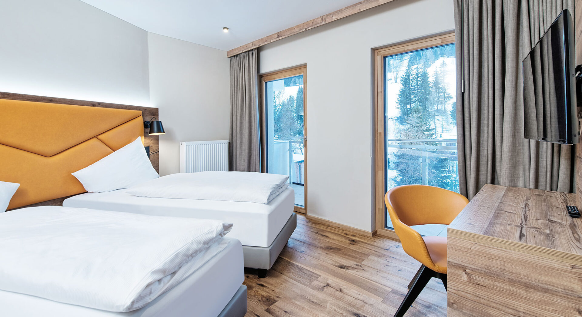 Komfortowy pokój z balkonem i widokiem na góry.