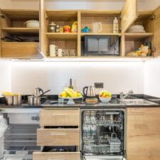 Apartamenty BILO o powierzchni około 31/35 m2 mogą pomieścić od 2 do 5 osób i składają się z sypialni dwuosobowej, łazienki z prysznicem i suszarką do włosów, pokoju dziennego z rozkładaną sofą, a w niektórych przypadkach również z łóżkiem typu puf, aneksu kuchennego i balkonów – mamy w ofercie BILO 3, BILO 4 I BILO 5