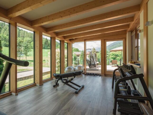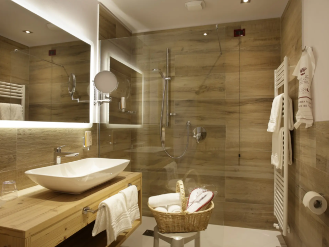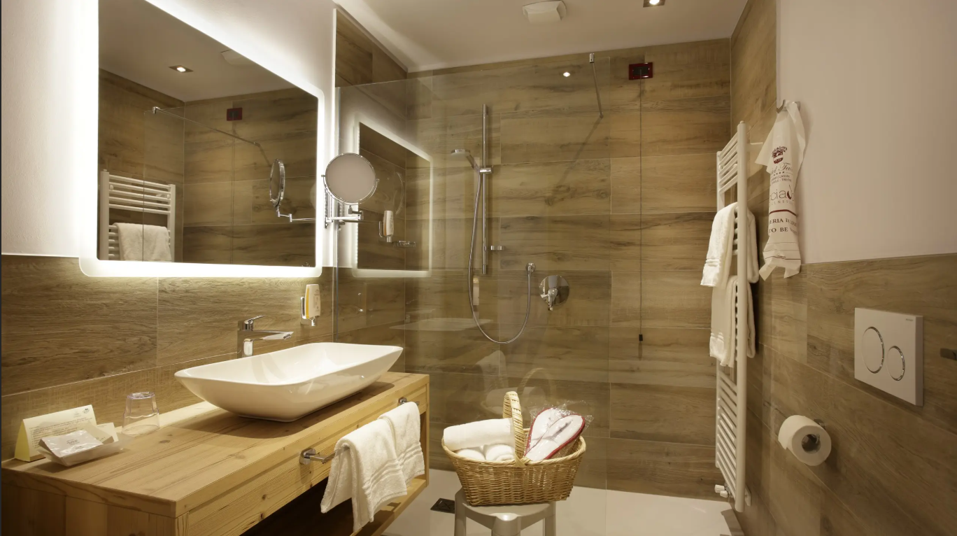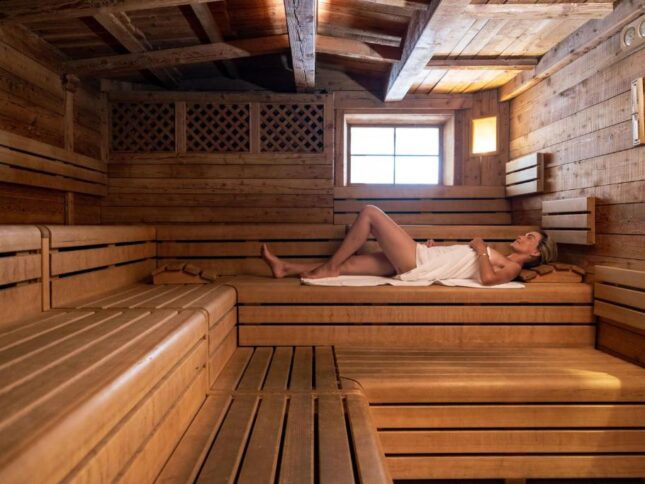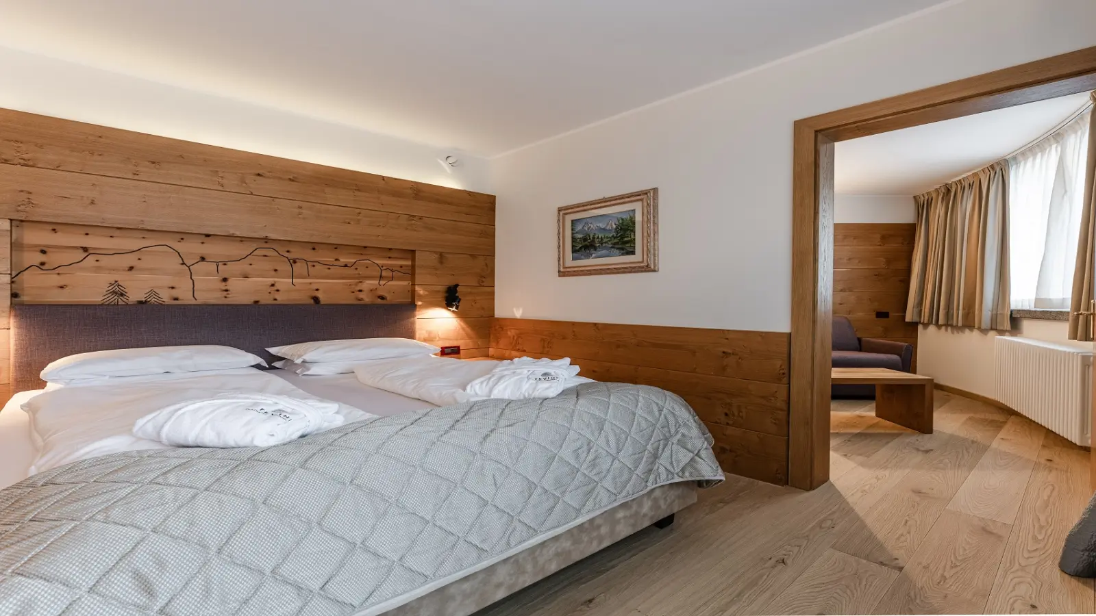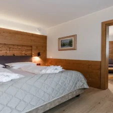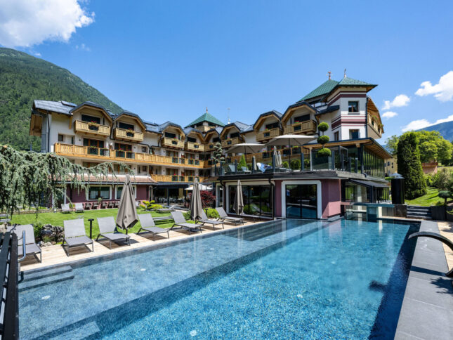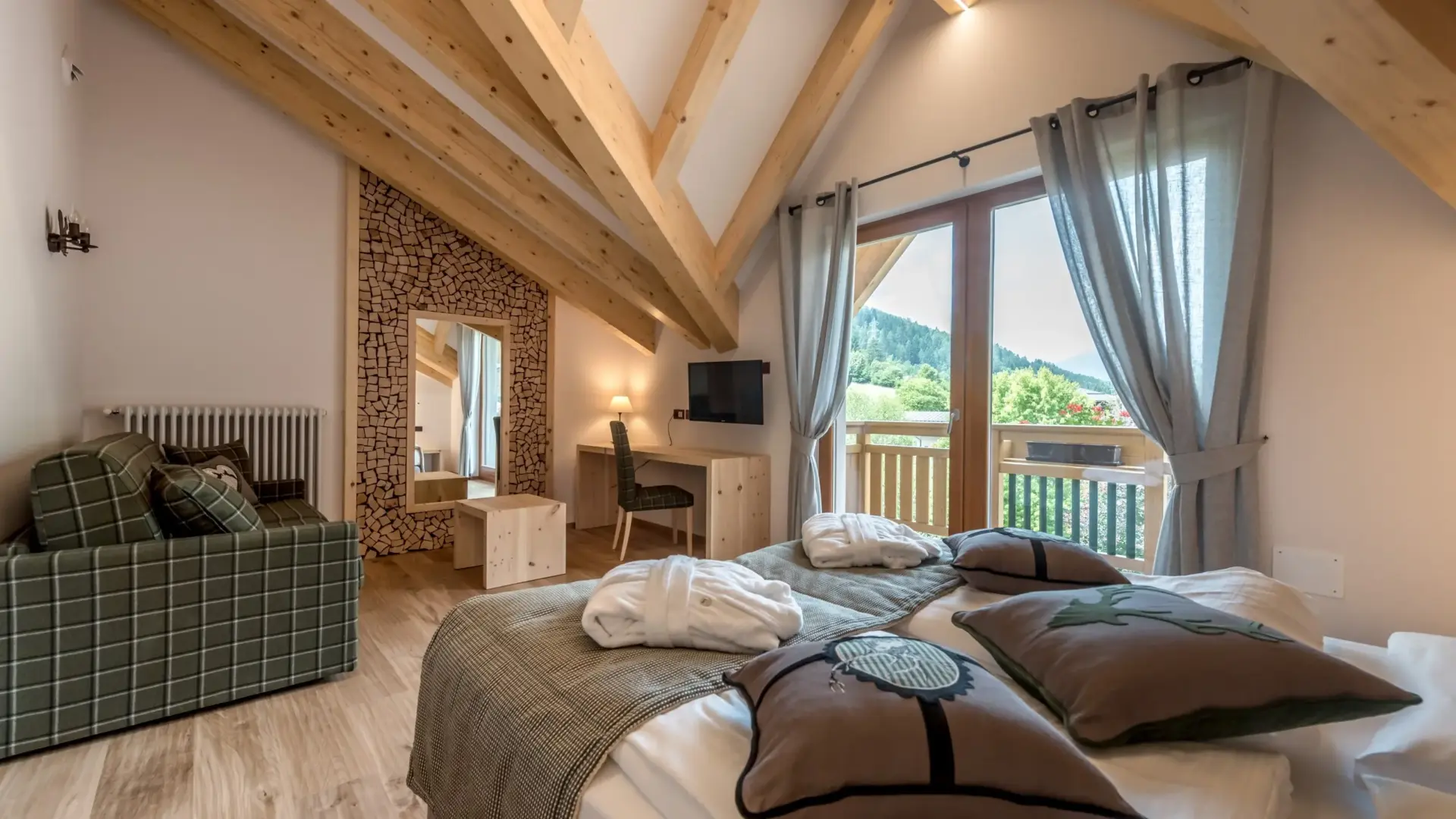 Stylowe pokoje i apartamenty w stylu tyrolskim lub nowoczesnym, z łazienką, TV‑SAT, telefonem, sejfem, minibarem, Wi‑Fi; większość z balkonemStrefa Wellness ok. 1000 m²