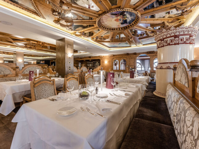 Bufetowe śniadania i czterodaniowe obiadokolacje, łączące lokalne tradycje i kuchnię międzynarodową, przy wykorzystaniu produktów z regionu oraz „zero‑km” Codziennie przekąski po nartach, raz w tygodniu kolacja tematyczna lub gala