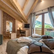 * przytulny górski pokój w stylu chalet z wygodnym małżeńskim łożem