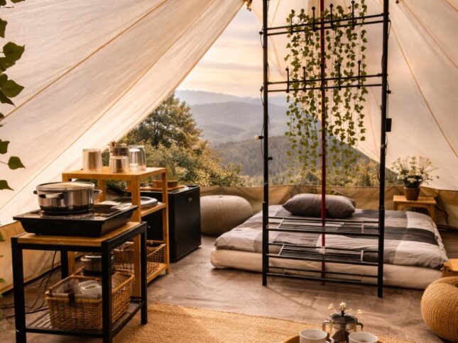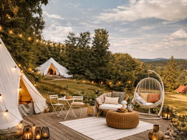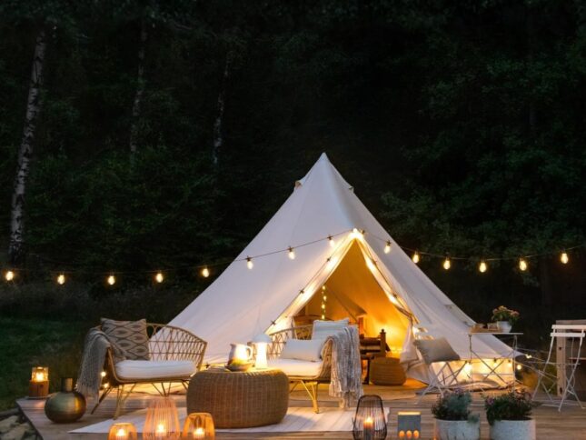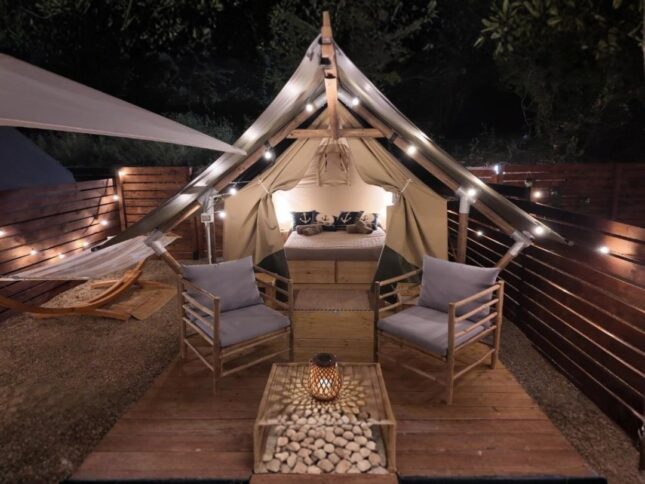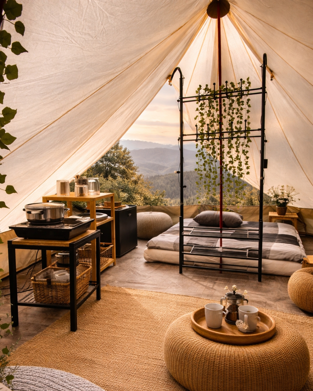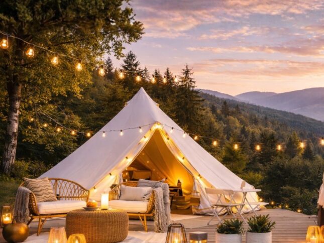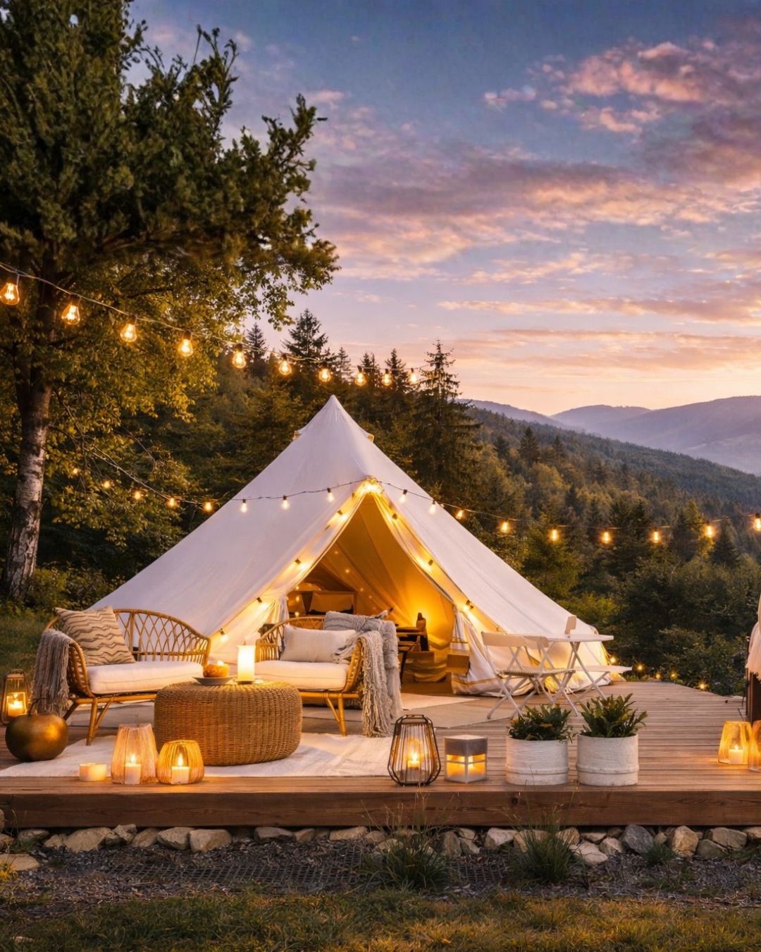 Zapraszamy do niezwykłego wypoczynku w otoczeniu lasu – oferujemy pięć w pełni wyposażone namioty, stworzone z myślą o relaksie, wygodzie i bliskości przyrody.